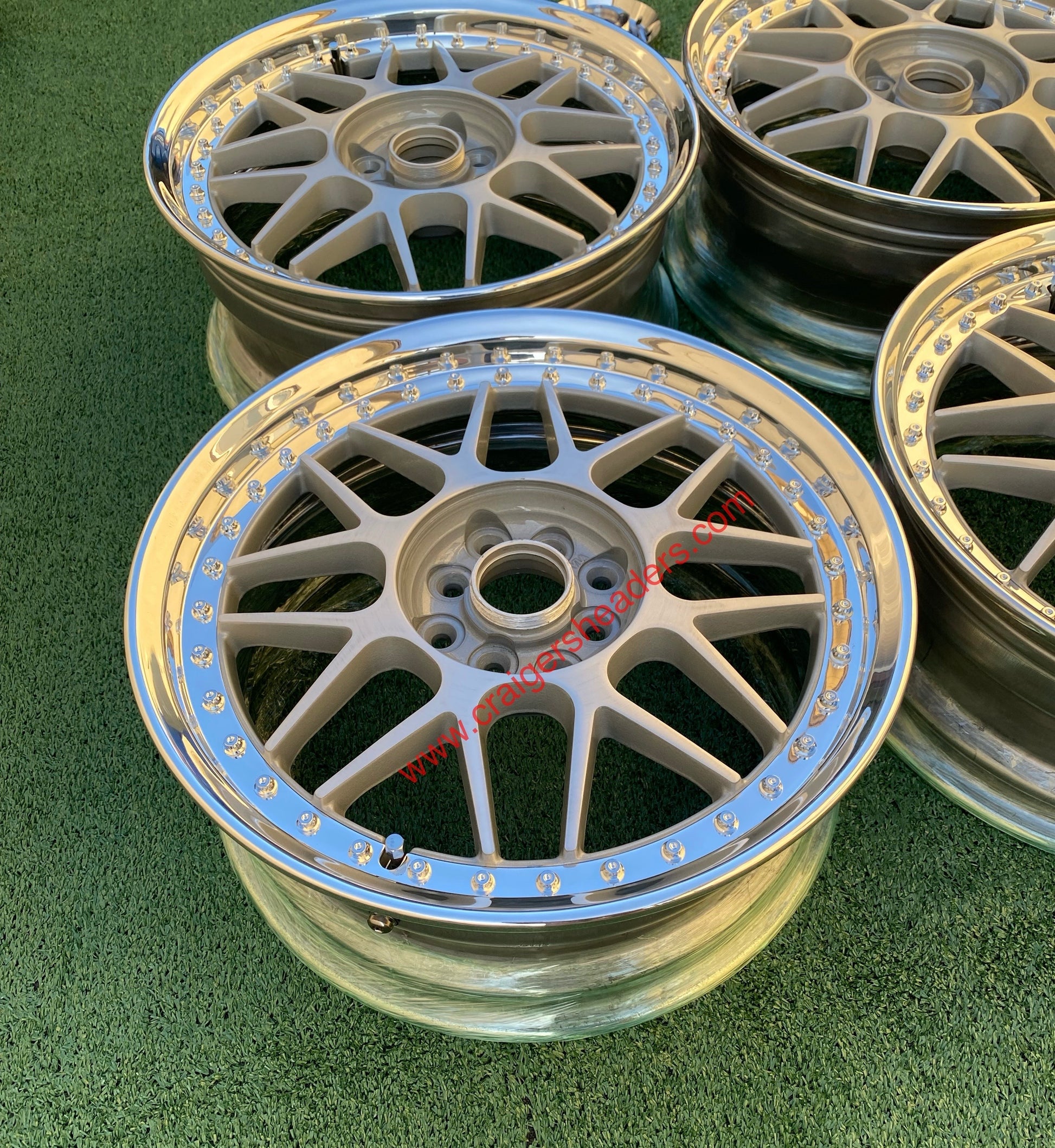 - Condition: Wheels have been refinished, faces were powder coated, brushed and clear coated. Inner barrels have been fully polished.